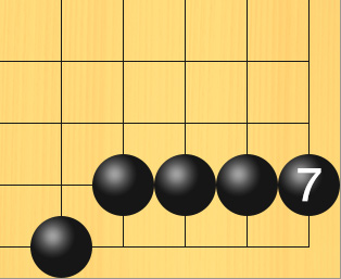 白2、白4と逃げますが、黒3、黒5と碁盤の端のほうへ追いつめると取ることができます。