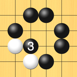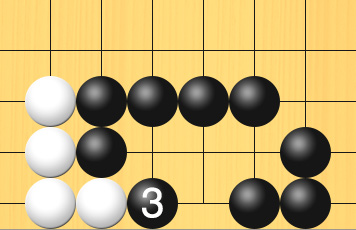すると、白石がアタリの状態になっているので、黒3と打って3子を取ることができました。